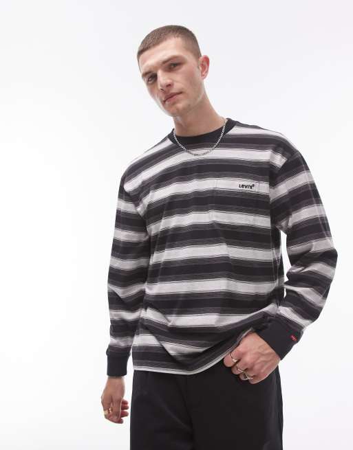 Levi's – Authentic – T-shirt w czarne paski z długim rękawem, kieszenią i logo