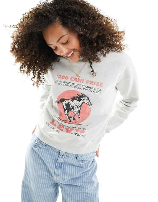 Levi's – Biała bluza z nadrukiem w stylu retro na dekolcie