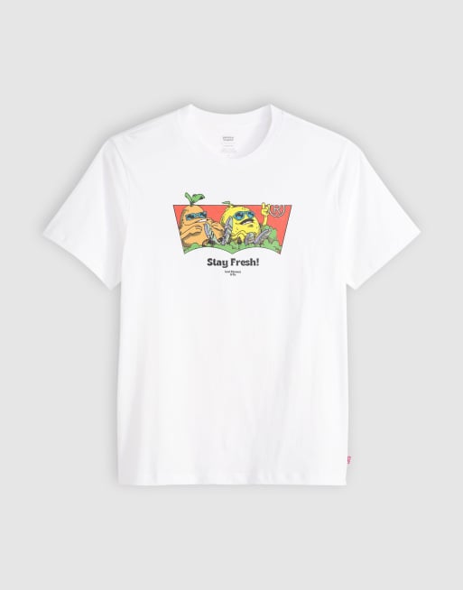 Levi's – Biały T-shirt z nadrukiem logo batwing z napisem „Stay Fresh“
