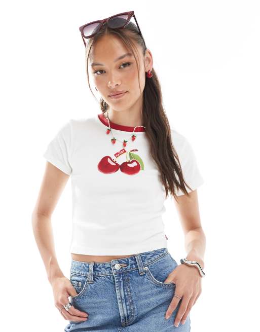 Levi's – Biały T-shirt z nadrukiem z wiśniami