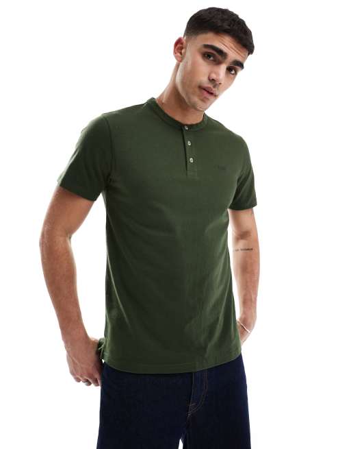 Levi's – Ciemnozielony T-shirt z dekoltem henley i logo batwing