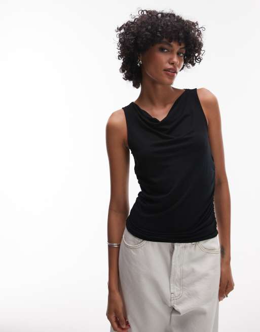 Levi's – Clea – Czarny top bez rękawów z drapowanym dekoltem