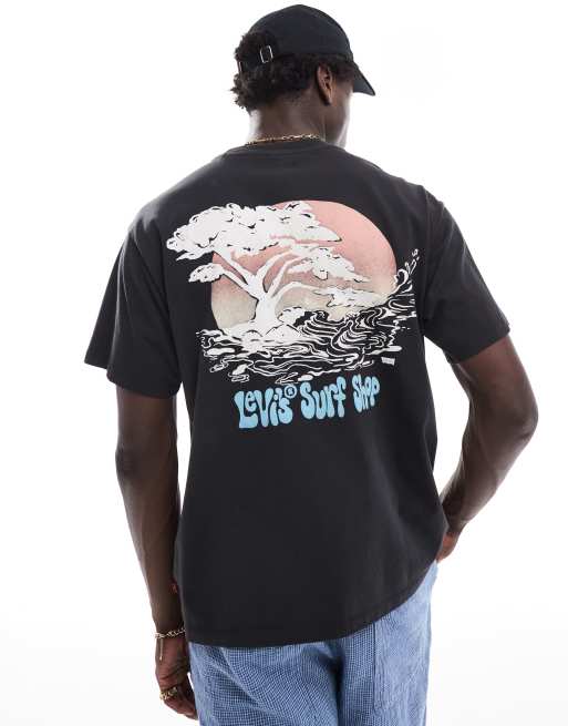 Levi's – Czarny T-shirt z surferskim nadrukiem na plecach