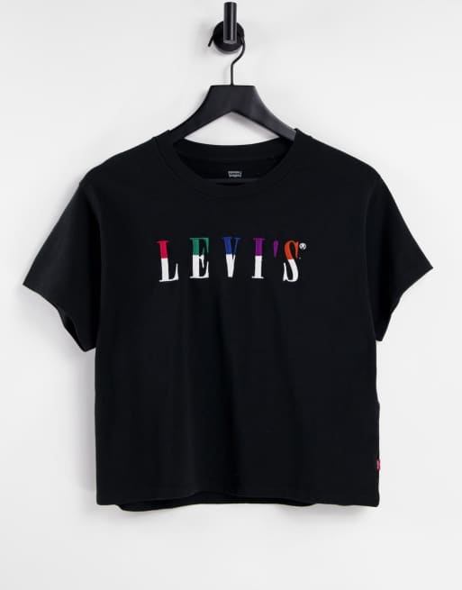 Levi's – Czarny T-shirt z tęczowym logo w stylu varsity