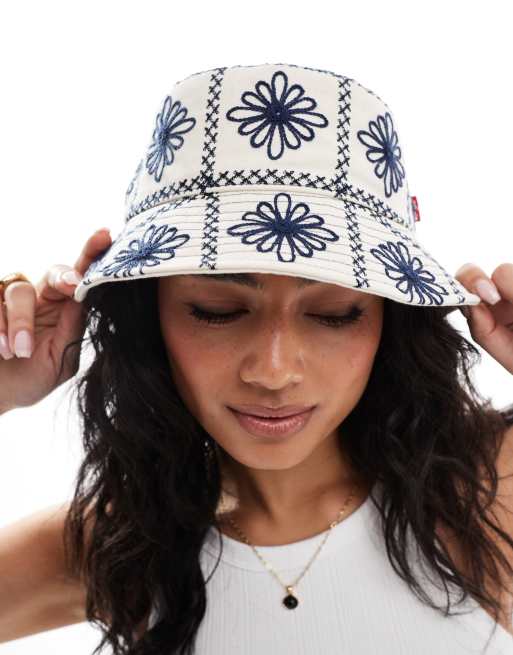 Levi's – Devon – Kremowa czapka typu bucket z haftowanym wzorem