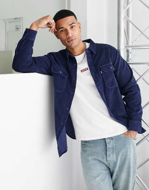 Levi's – Granatowa klasyczna koszula z kieszeniami i czerwoną naszywką z logo w stylu roboczym