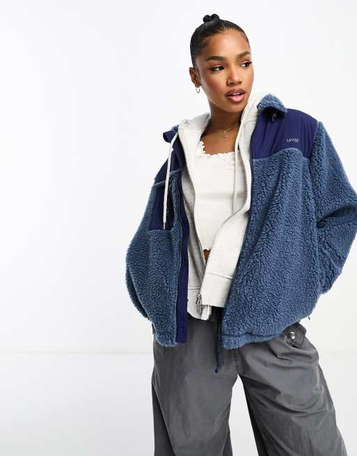 Levi's – Granatowa zapinana na zamek kurtka z kożuszka z logo