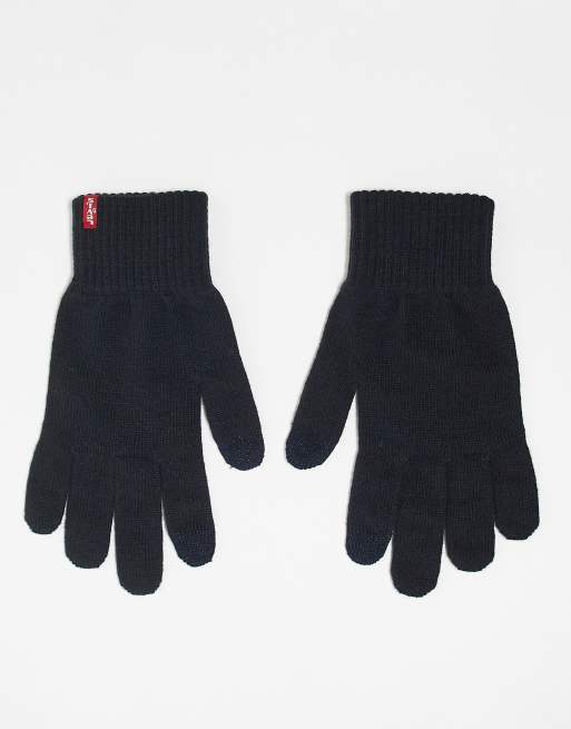 Levi's – Granatowe dzianinowe rękawiczki do ekranów dotykowych z naszywką z logo