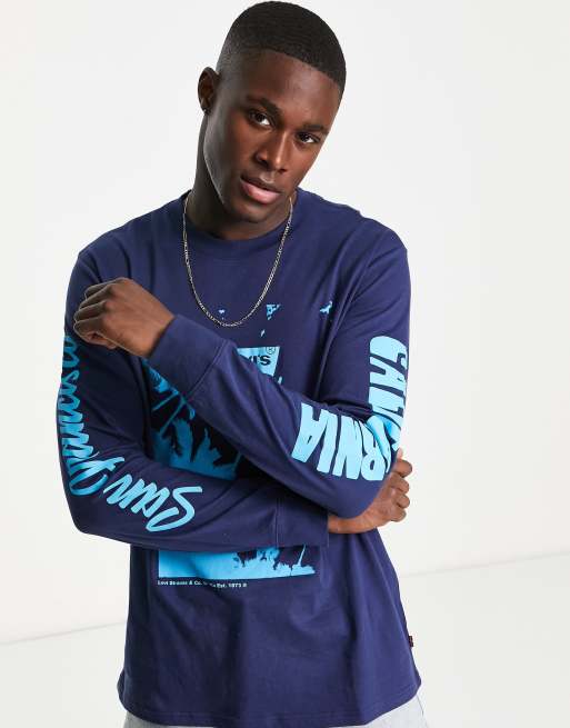 Levi's – Granatowy T-shirt z długim rękawem i nadrukiem na piersi i rękawach