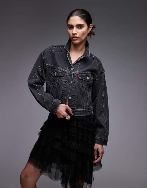 Levi's – Krótka kurtka jeansowa w spranym czarnym kolorze ze zdobieniem w stylu lat 90.