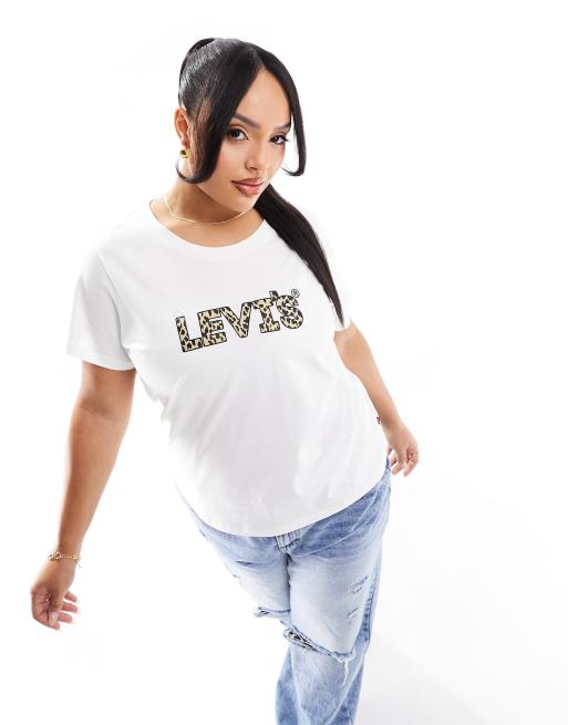 Levi's Plus – Perfect – Biały T-shirt z logo w cętki na piersi