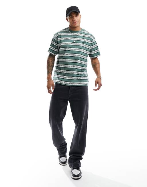 Levi's – Zielony T-shirt oversize w paski ze wzorem