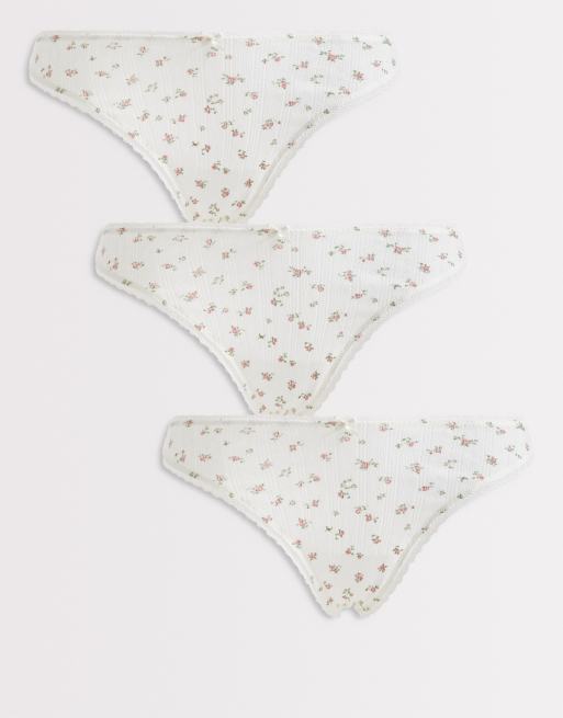 Lindex – Zestaw 3 par stringów z ażurowej dzianiny w kolorze złamanej bieli w kwiatowy wzór