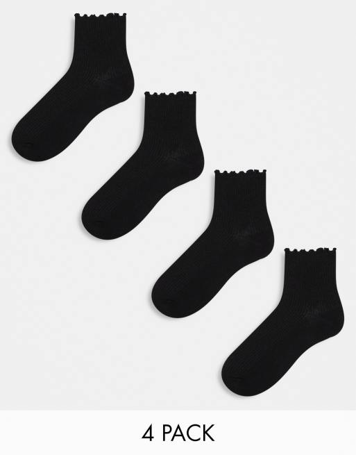 Lindex – Zestaw 4 par czarnych skarpetek do kostki z karbowanym wykończeniem