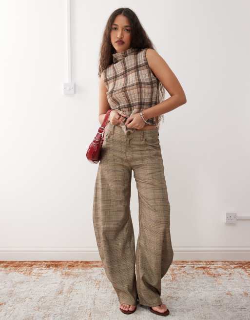 Lioness – Horseshoe – Jeansy o baryłkowym kroju w kolorze mokki w kratkę