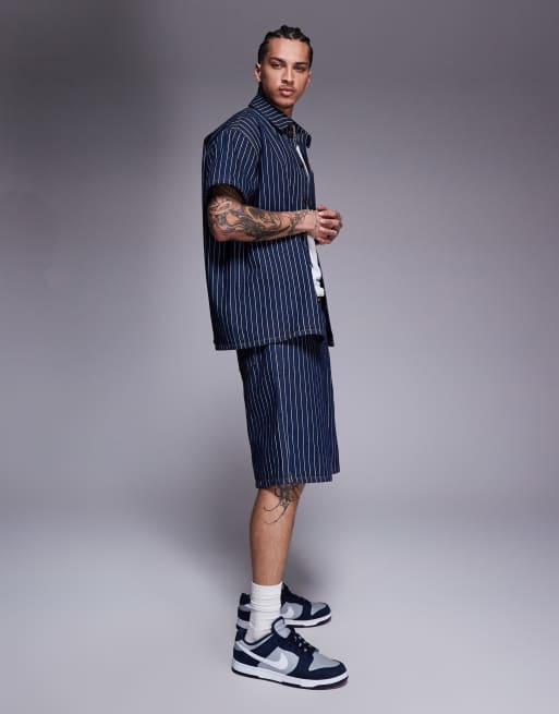 Liquor N Poker – Ciemnoniebieski zestaw jeansowy oversize w prążki