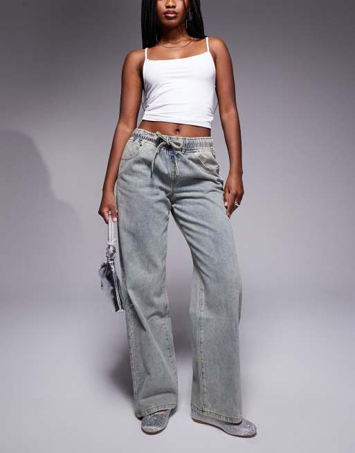 Liquor N Poker – Niebieskie bardzo luźne jeansy ze strasami po bokach