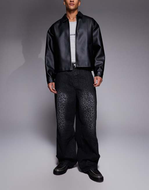Liquor N Poker – Viper – Czarne luźne jeansy we wzór skóry węża