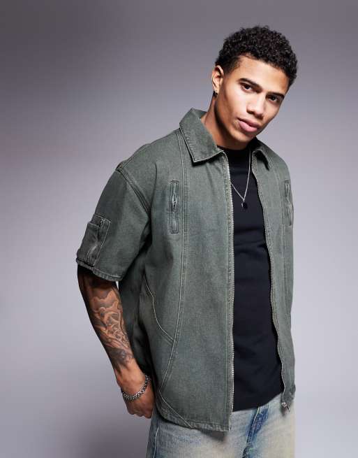 Liquor N Poker – Zielona koszula jeansowa ze wstawkami