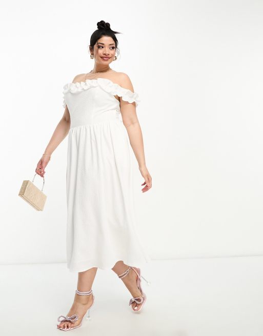 Little Mistress Plus – Biała sukienka midi z dekoltem bardot