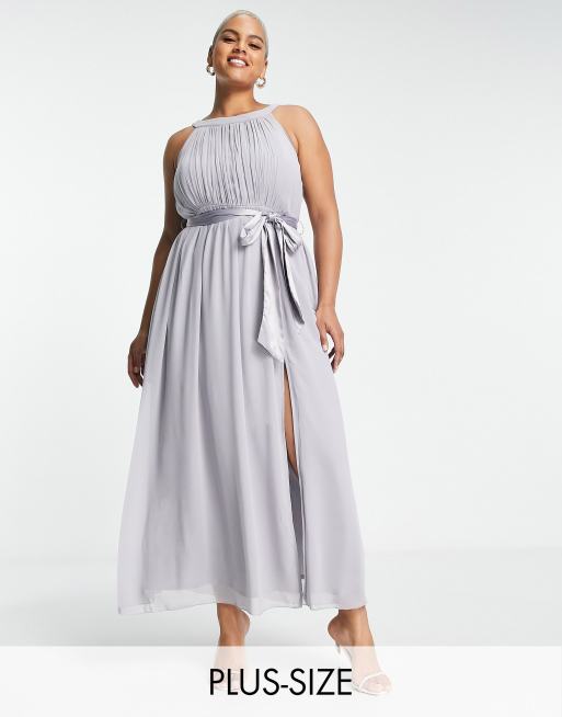 Little Mistress Plus Bridesmaid – Szaroniebieska sukienka maxi z odkrytymi ramionami