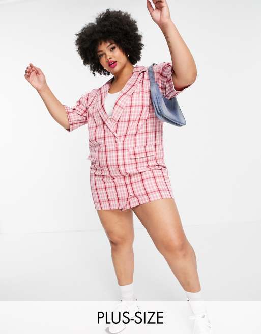 Lola May Plus – Różowa marynarkowa sukienka mini w kratę