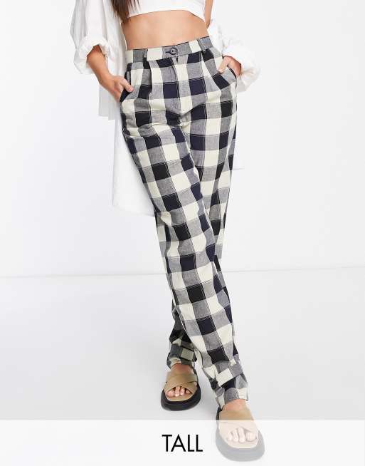 Lola May Tall – Dopasowane spodnie w kratę z wiązanymi nogawkami