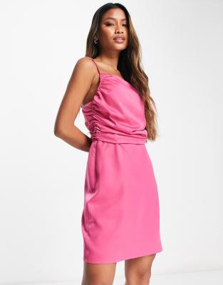 Lola May – Różowa sukienka mini na ramiączkach z marszczonym dekoltem
