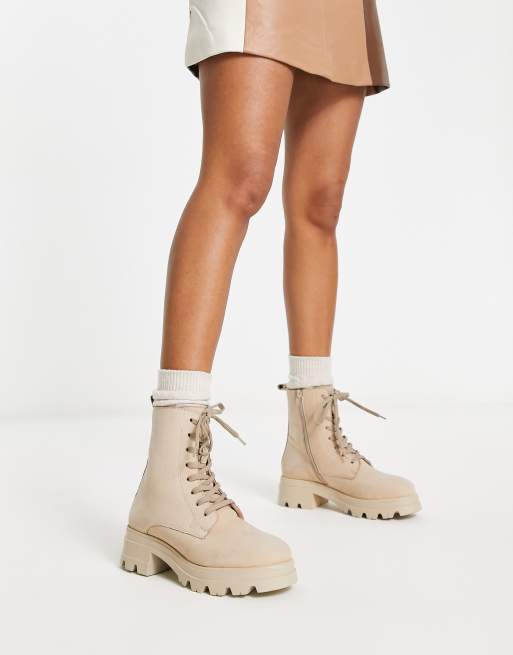 London Rebel – Drench – Sznurowane skórzane buty w camelowym kolorze
