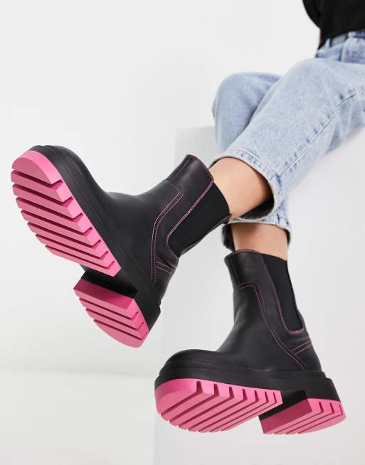 London Rebel – Czarne sztyblety na różowej podeszwie
