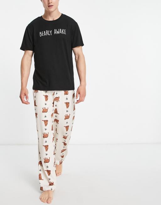 Loungeable – Bearly Awake – Czarno-kremowa piżama z napisem i nadrukiem