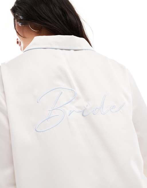 Loungeable Curve Bride – Satynowy zestaw w kolorze kości słoniowej: koszula z długimi rękawami i szorty
