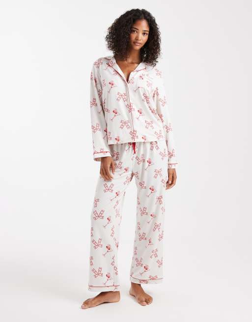 Loungeable – Kremowa piżama z bardzo miękkiego dżerseju ze wzorem w koktajle i kokardki