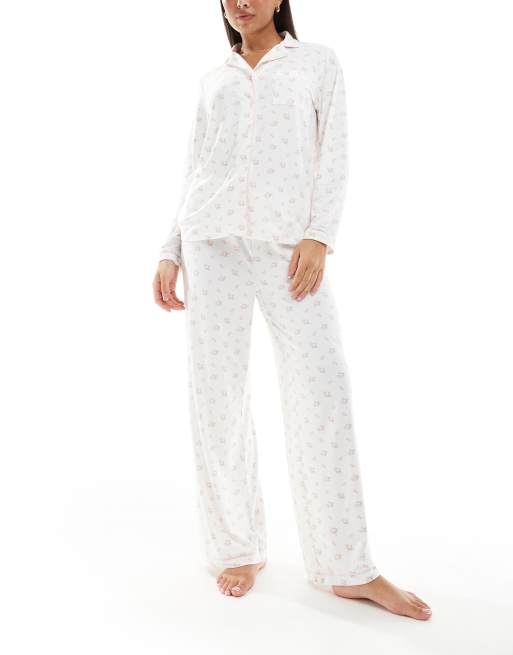 Loungeable – Piżama oversize z dżerseju w kwiatowy wzór: koszula z długimi rękawami i spodnie