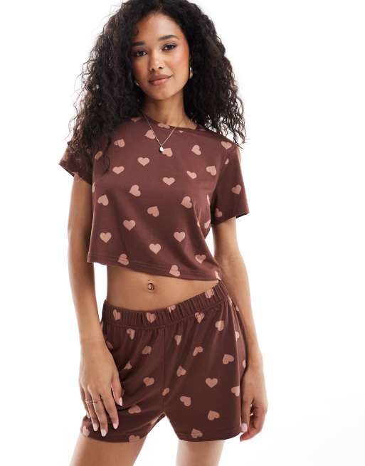 Loungeable – Piżama we wzór w serca z krótkim T-shirtem i szortami