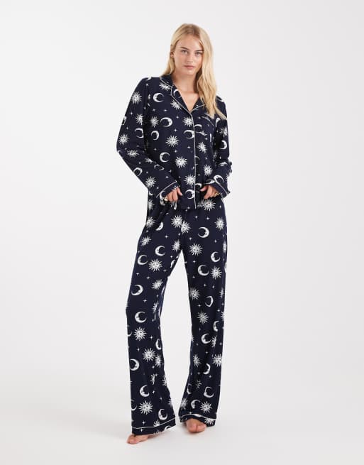 Loungeable Tall – Granatowa bardzo miękka dżersejowa piżama w astrologiczny wzór z wypustkami