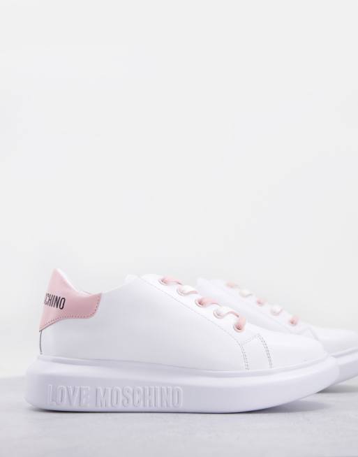 Love Moschino – Białe buty sportowe na platformie z różowymi detalami