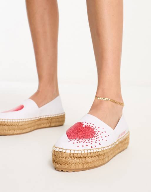 Love Moschino – Białe espadryle na płaskiej platformie z logo w kształcie serca