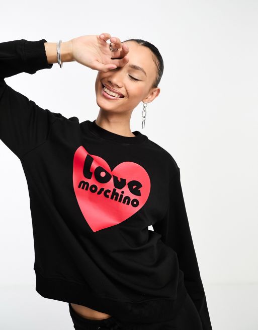 Love Moschino – Czarna bluza z logo w kształcie serca, część zestawu