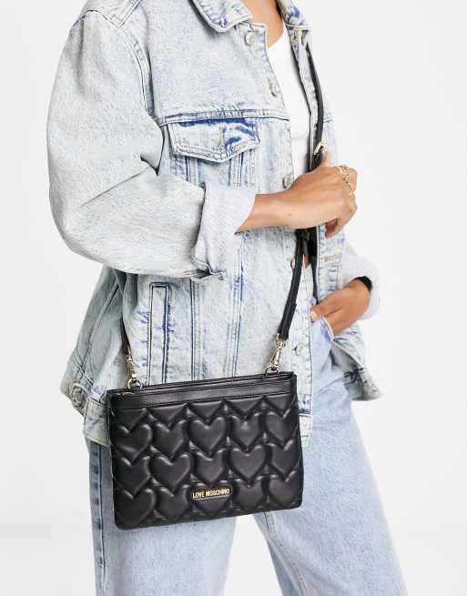 Love Moschino – Czarna pikowana torebka crossbody w serca