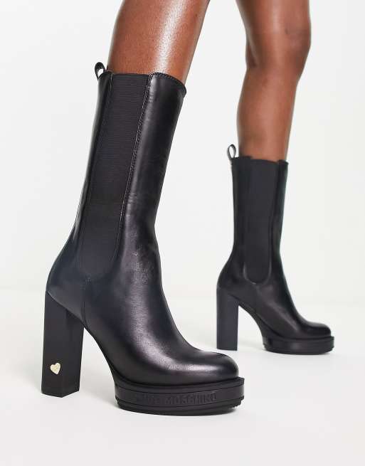 Love Moschino – Czarne botki na obcasach z ozdobnym sercem