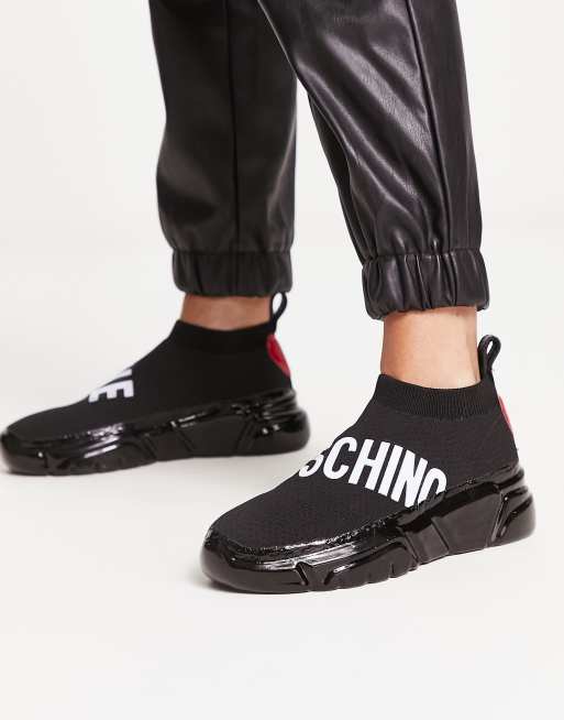 Love Moschino – Czarne wsuwane buty sportowe do kostki z dzianiny z logo