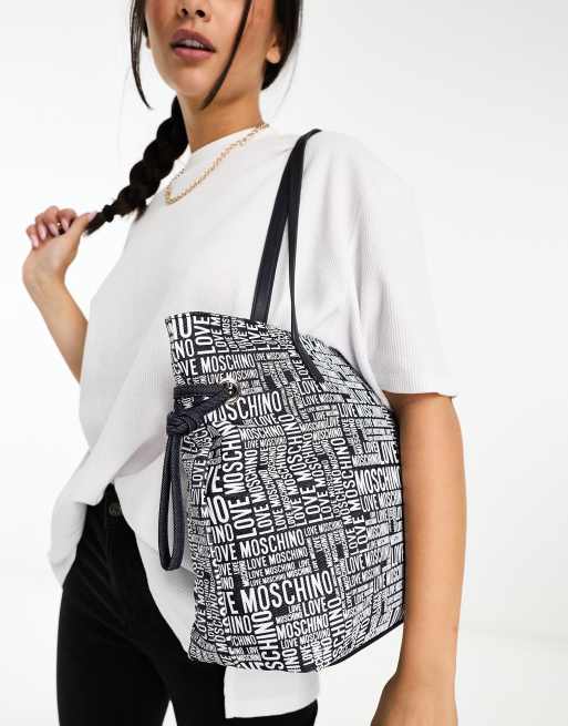 Love Moschino – Czarno-biała torebka typu tote ze wzorem z logo na całości