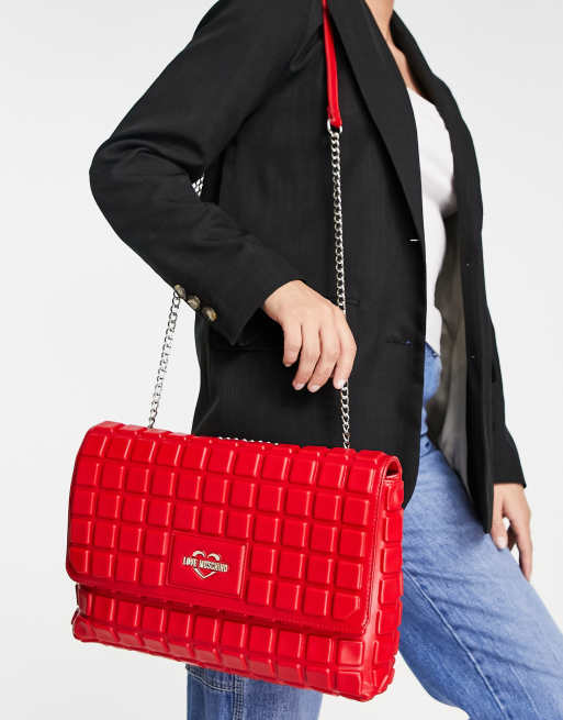 Love Moschino – Czerwona torebka na ramię z tłoczonymi zdobieniami