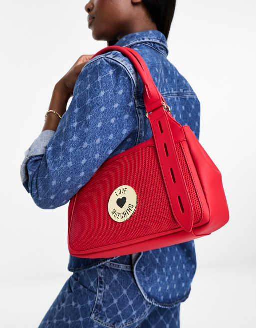 Love Moschino – Czerwona torebka na ramię z tłoczonymi zdobieniami