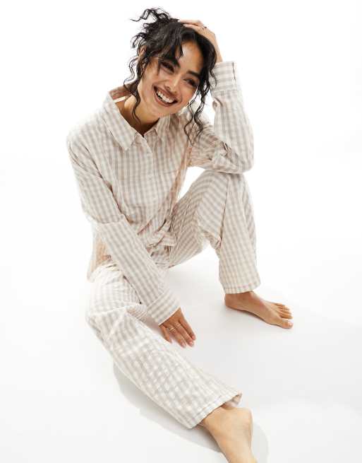 Luna – Mieszaj i łącz – Beżowa koszula od piżamy oversize w kratkę vichy