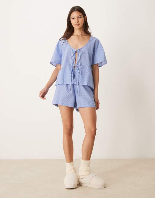 Luna – Niebieskie szorty bokserki od piżamy w kratkę vichy