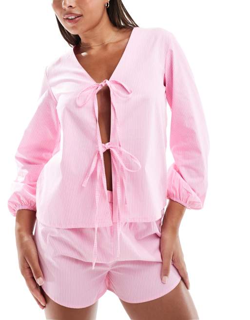 Luna – Wiązany jasnoróżowy top od piżamy w paski