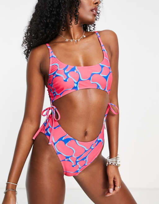 Luxe Palm – Jaskraworóżowy kostium kąpielowy z wycięciami