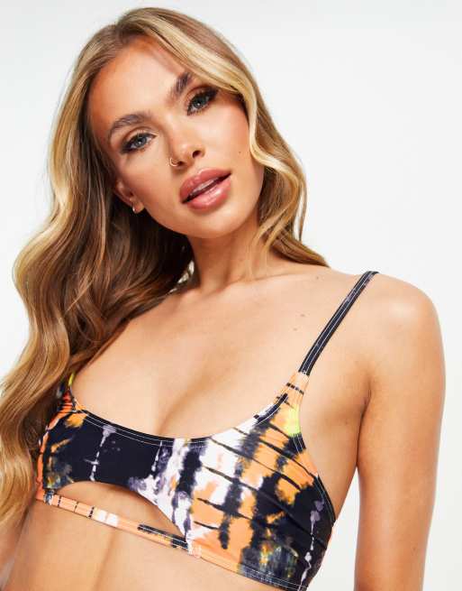 Luxe Palm – Pomarańczowa góra od bikini z wycięciami i efektem tie dye